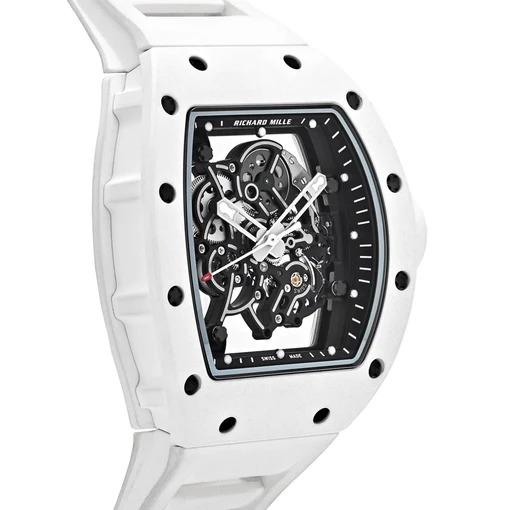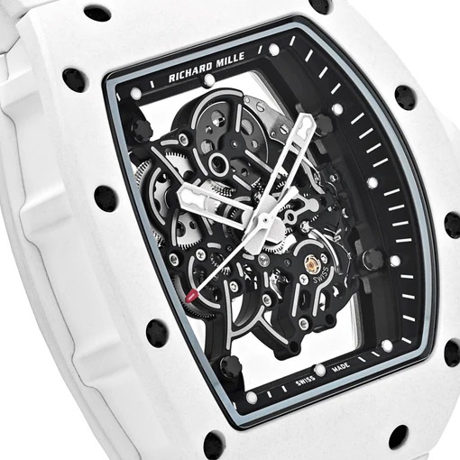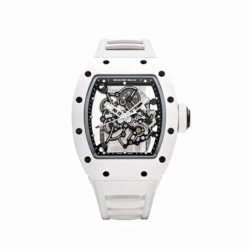 The Richard Mille RM 055 Bubba Watson in white ceramic is a striking, ultra-lightweight timepiece engineered for high-impact performance with an unmistakably bold design. Developed in collaboration with golf champion Bubba Watson, this model exemplifies Richard Mille’s philosophy of creating “racing machines for the wrist”—fusing avant-garde materials with technical mastery to withstand the rigors of elite athletic performance.